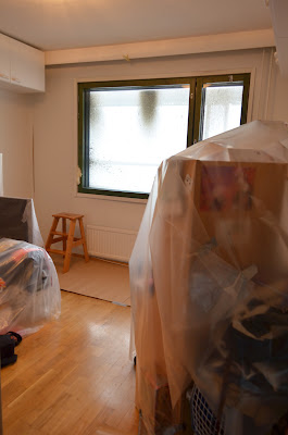 | Huoneeni piti paketoida kauttaaltaan. Kuvassa vielä vanha -ei niin nätti- vihreä ikkuna *** My room had to wrap completely. In this picture there's the old -not so pretty- green window |